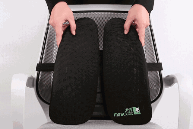 米喬腰墊有像肺葉一樣的外形,好像雙手溫順撐起擺佈腰背,中空不搾取脊椎,能平均疏散壓力,腰椎受壓比直接坐在椅子上少一半以上,腰部肌肉也能好好放松~
