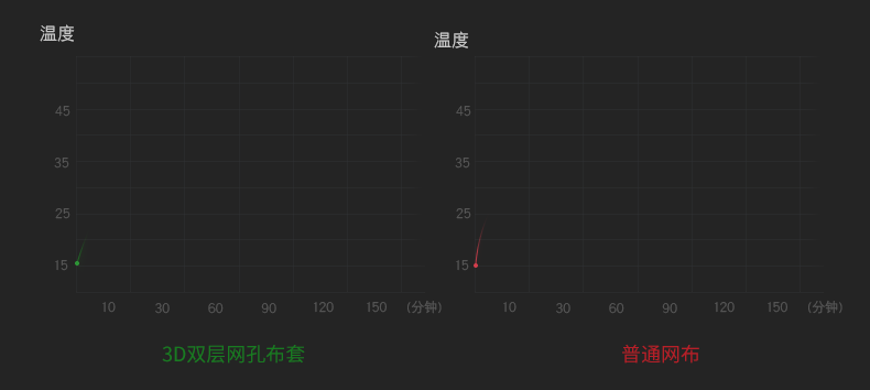 ▲3D雙層網孔佈套和通俗網佈的散熱對照