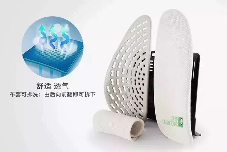 腰墊面料是雙層3D網眼佈,環保無毒,透氣防黴,還能直接拆上去清洗。166個透氣孔,比記憶棉這類填充式腰墊要好,久靠不悶汗,一年四時都能用。